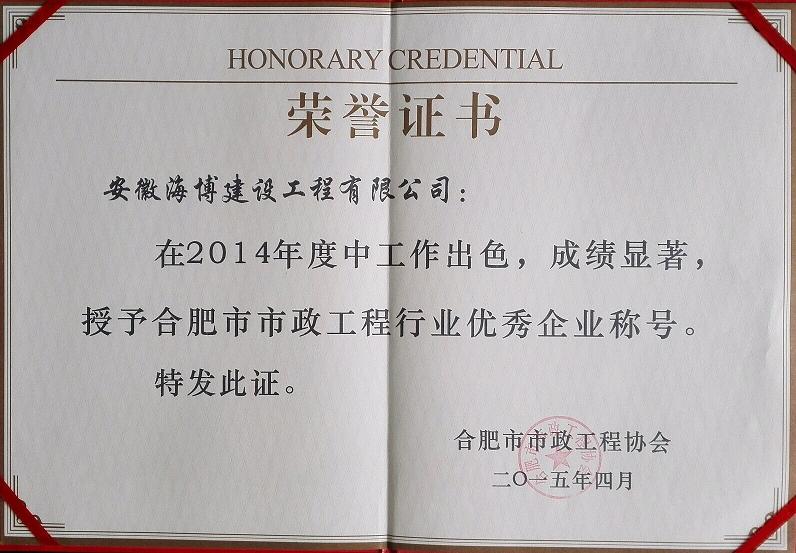 炎炎夏日,驕陽似火,我公司喜獲2015年度合肥市市政工程“廬州杯”獎,給酷熱的盛夏送來了陣陣涼意。由公司承建的合肥市高新區(qū)寧西路(長寧大道-肥西界)道橋及附屬工程經(jīng)合肥市城鄉(xiāng)建設委員會及合肥市市...