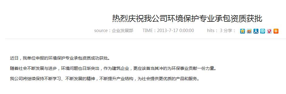 近日,我單位申報的環(huán)境保護(hù)專業(yè)承包資質(zhì)成功獲批。 隨著社會不斷發(fā)展與進(jìn)步,環(huán)境問題也日漸突出,作為建筑企業(yè),更應(yīng)該首當(dāng)其沖的為環(huán)保事業(yè)貢獻(xiàn)一份力量。...