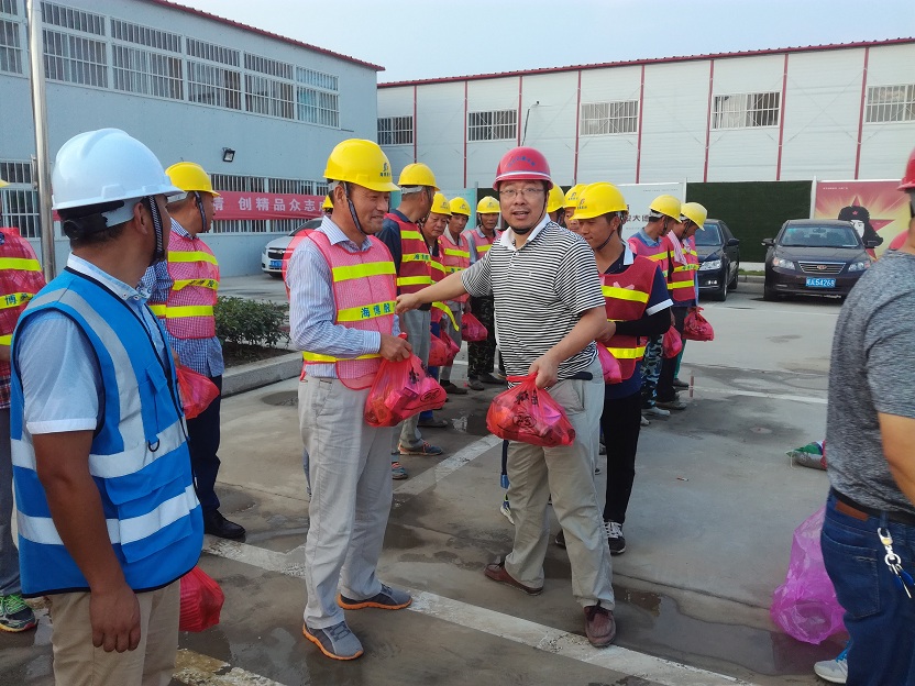 盛夏時(shí)節(jié),連續(xù)多日40度的高溫炙烤著合肥大地。7月28日,合肥市經(jīng)開(kāi)區(qū)重點(diǎn)局張局長(zhǎng)、董處長(zhǎng)和海納項(xiàng)目辦何主任冒著酷暑,來(lái)到我公司海納新能源項(xiàng)目,給項(xiàng)目部送來(lái)了防暑降溫物資并逐一發(fā)放到工人手中。張局長(zhǎng)對(duì)頂著烈日奮戰(zhàn)在一線(xiàn)的全體施工人員給予高度的贊賞和關(guān)心。投資運(yùn)營(yíng)中心周總和部分管理人員、現(xiàn)場(chǎng)監(jiān)理、工人代表,參加了慰問(wèn)儀式。周總代表項(xiàng)目部對(duì)重點(diǎn)局領(lǐng)導(dǎo)表示感謝,要求全體員工鼓足干勁,精心組織精心施工,不辜負(fù)各級(jí)領(lǐng)導(dǎo)的關(guān)懷和期待。