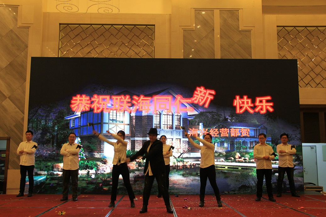 本次聯(lián)歡會(huì)全部由集團(tuán)同仁自編自演,主題鮮明,內(nèi)容豐富,形式多樣,有唱歌、跳舞、小品、魔術(shù)、古箏、吉他等等,不僅有集團(tuán)同仁們的精彩表演,還有同仁家屬們的傾情演繹。現(xiàn)場(chǎng)氣氛熱烈異常,叫好聲和歡呼聲此起彼伏,其中幽默小品《開(kāi)學(xué)了》、搞笑舞蹈《功夫3》、吉他彈唱《平凡之歌》、動(dòng)人合唱《東方之珠》、深情朗誦《我的南方和北方》、趣味游戲《踩氣球》、《聞雞起舞》等掀起一陣陣演出高潮,盡情地展示了聯(lián)海人的多才多藝,深情地謳歌了聯(lián)海人揚(yáng)帆起航的豪情壯志,大力地弘揚(yáng)了聯(lián)海人勇于創(chuàng)新的精神,完美地呈現(xiàn)了聯(lián)海文化建設(shè)的新氣象。