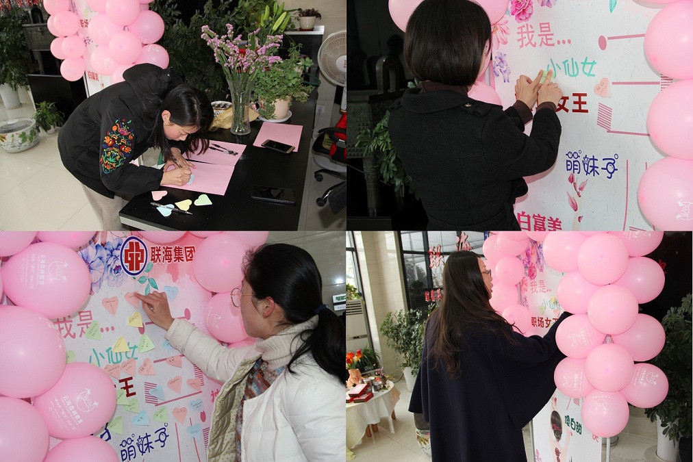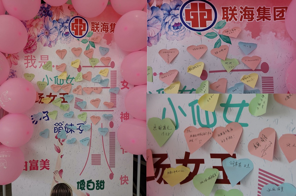 “小驚喜”過后,女神們紛紛在海報上貼上了可愛的標(biāo)簽及祝福語:小仙女,萌妹子,白富美,職場女王,健康生活、快樂工作,聯(lián)海集團(tuán)越來越好,集團(tuán)發(fā)展蒸蒸日上等。一張張愛心標(biāo)簽充分展現(xiàn)了自己的獨(dú)特風(fēng)貌和對集團(tuán)的美好祝福。