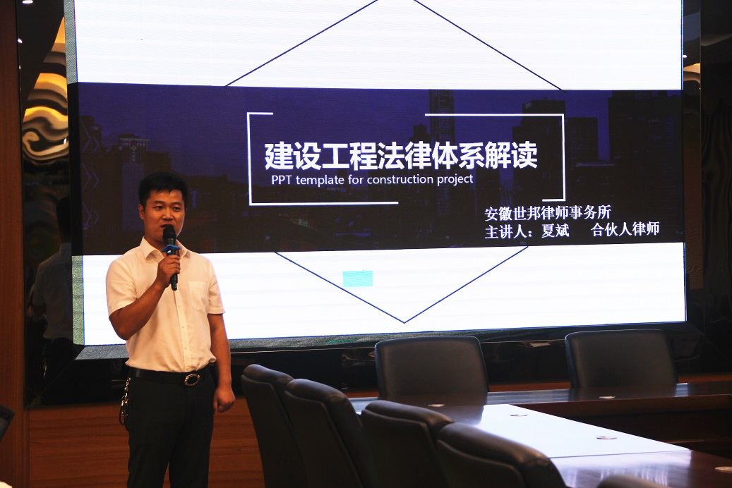 本次培訓(xùn)《建設(shè)工程法律體系解讀》為主題,由安徽世邦律師事務(wù)所夏斌律師主講。夏律師結(jié)合當(dāng)下施工企業(yè)現(xiàn)狀、現(xiàn)場解讀有關(guān)法律法規(guī)、法院裁判規(guī)則,結(jié)合自己代理的案例分析其產(chǎn)生的原因并總結(jié)經(jīng)驗,系統(tǒng)的講解了目前施工企業(yè)存在的法律風(fēng)險及防控措施。在隨后的交流環(huán)節(jié)中,夏律師從法律層面逐一解答了公司各板塊及項目負(fù)責(zé)人目前存在的法律困惑和問題,為我們提供了富有成效的解決思路和方案,現(xiàn)場氣氛活躍,效果良好。