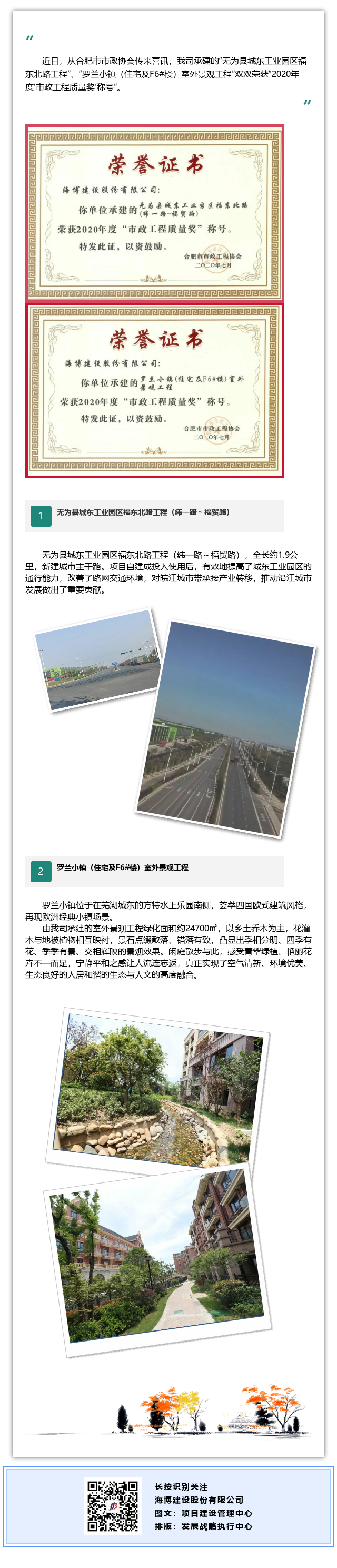 公司兩項(xiàng)目喜獲合肥市“市政工程質(zhì)量”獎(jiǎng)