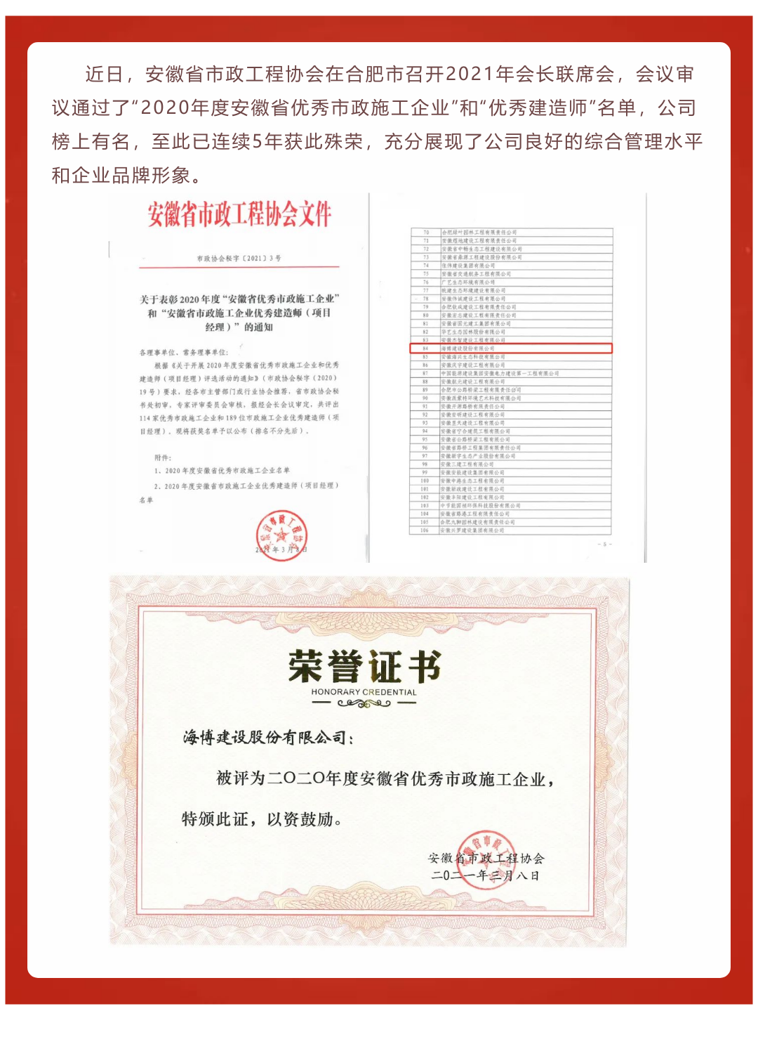 熱烈祝賀公司再獲省優(yōu)秀市政施工企業(yè)稱號(hào)